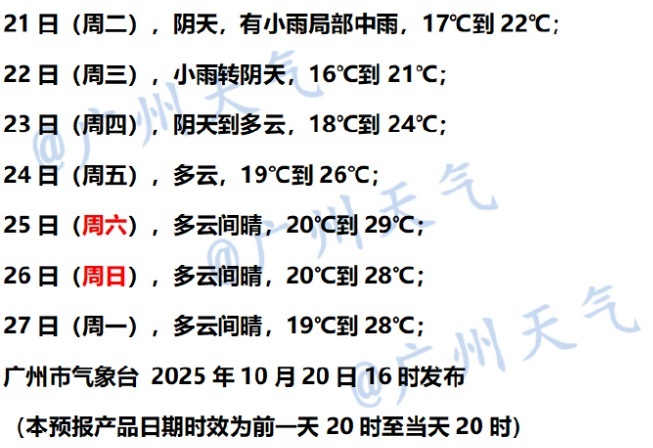不过,升温也在路上了。10月23日—25日广州转多云天气,气温逐渐回升,风力逐渐减弱。